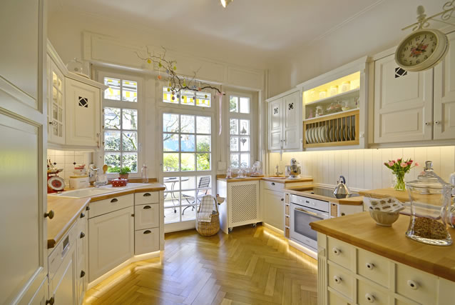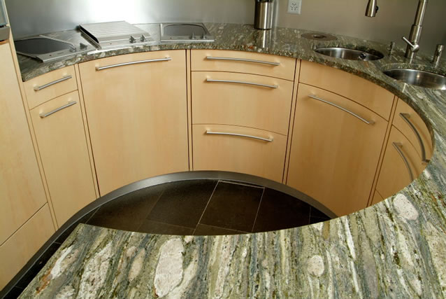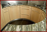 - gehärtetes (oder satiniertes) Glas im Bereich von Arbeitsflächen bzw.