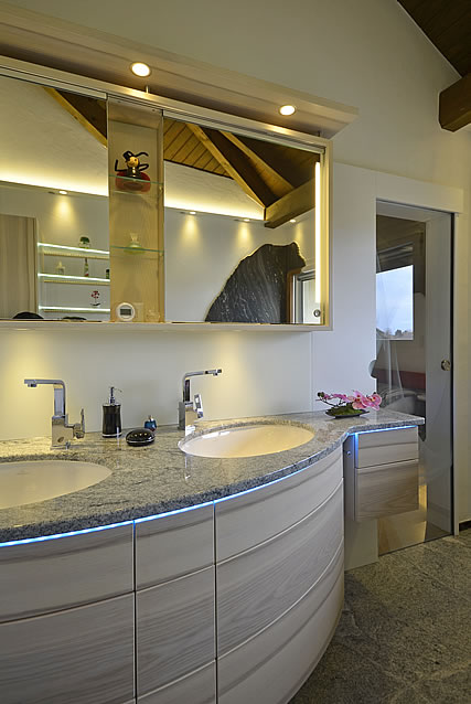 Durch das ansprechende und lichtdurchlässige Medium lassen sich Wohn-, Bad- oder Küchenmöbel komfortabel realisieren.